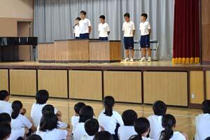 1学期が終わりました。どの学年もよくがんばり、実りの多い1学期でした。各学年の代表が反省を発表しましたが、いずれも前向きで意欲を感じるものでした。充実した夏休みを送り、9月には元気に登校してください。
