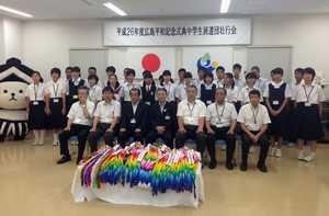8月6日、広島平和記念式典に向けて、栃木市の中学生派遣団の壮行会が7月30日18時から栃木市庁舎でありました。今年で3年目を迎えます。市内の各中学校から男女各1名ずつの団員が参加します。それぞれの学校で生徒達が心を込めて折った千羽鶴を式典に持って行きます。今回は栃木南中が代表のあいさつをしました。栃木市長さんや教育長さんから激励のことばをいただきました。