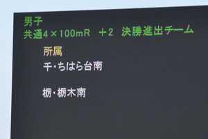 南中の出場は、今日は男子4×100mリレー予選のみ。 気温30℃のスタジアムで4時10分にスタート、南中は最後の第3レース。上右の写真は最後の走者へのバトンタッチの瞬間、左から2番目、第7レーンが南中です。各レースの1位と2位に加えて3位のうちタイムが上位2チームの計8チームが決勝に進出できます。下左スクリーンの写真のとおり、+2チームに入り、みごと決勝進出を果たしました。下右の写真は、今日すばらしい走りを見せてくれた4人です。明日は200mの予選と決勝、リレーの決勝があります。がんばってください。