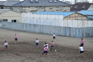 少し狭くなった校庭で、サッカー部が今日も元気に練習しています。 (このところ無精して校庭ばかり写していますが・・・フェンスが少し上に伸びました)