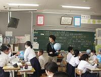 4月27日(金)、2年生の社会科で、地球儀を活用した地理の授業がありました。グループの友だちとともに、地球儀を回転させ、時差のしくみを考えました。