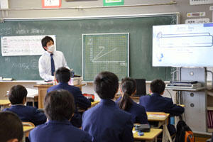今日は南中を会場に数学の初任者研修がありました。授業者はN先生で、9人の初任の先生方が県内各地から集まり、1日研修をしました。先生と生徒がとても仲良く、穏やかな雰囲気で学習が進みました。1年2組の皆さん、お疲れ様。