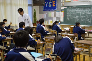3年生の受験勉強のため、放課後学習会をやっています。 これは理科の学習、隣のクラスでは英語をやっています。 年が明けるとすぐに私立高の試験が始まるので、みんな真剣です。 学習会は希望制ですが、どんどん参加しようよ!