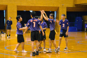 男子バレーボール部は、学校の事情でこの県大会を最後に活動をやめます。 少ない人数でよくがんばりました。 一緒に戦った仲間との思い出を大切にしてください。 仲間って、いいね。
