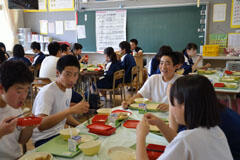 今日は期末テスト第1日目。 テストの後の給食は、みんなほっとしたのか、和やかな時間が流れていました。