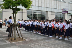 7:50栃木駅南口集合、東京に向かって1年生が元気に出発していきました。 しっかり勉強してきてください。 2年生は職場体験学習の第1日目です。 修学旅行を明日にひかえた3年生だけが学校に登校しました。