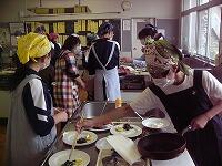 2年生の技術・家庭科の栽培と調理の授業風景です。袋に土を入れての大根栽培と、鮭のムニエルづくりです。