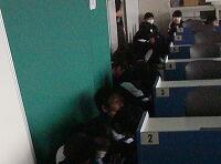11月14日(火)、弾道ミサイルJアラートに対する避難訓練を実施しました。授業の教室から移動し待機する窓のない場所を確認した後、体育館でJアラート情報への対応について説明を受けました。