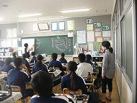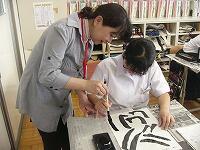 7月4日(火)、2年生の書写の授業で、アシストネットの方にお手伝いいただきました。しばらくぶりの毛筆で上手く書けない生徒は、基本の筆の動かし方を教えてもらいました。