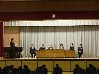4月11日(火)、入学したばかりの1年生に向けて、体育館で部活動紹介を行いました。実演を見せながら、各部の部長が部員勧誘のために練習内容などを説明しました。
