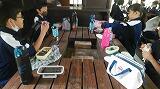 自然の中で食べるお弁当はやっぱり美味しいですね。保護者の皆様ありがとうございます。午後の活動に備えてしっかり食べてください。