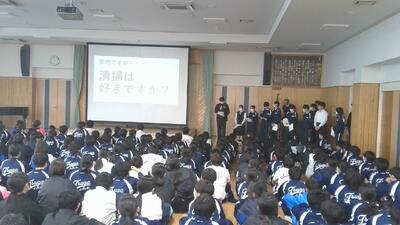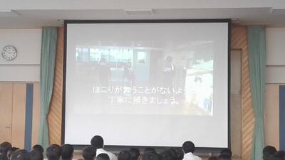 美化委員が模範となる清掃を実践し、動画でまとめて上映してくれました。