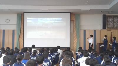 12月10日(水)、全校集会が多目的ホールで行われました。