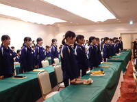 1日目の夜、夕食後には立志式を行いました。式辞や知事メッセージに続き、立志記念作文発表では、代表生徒が立志を迎えるにあたり、将来について考えた作文を発表しました。さらに、クラスごとに誓いの言葉を述べ、校歌斉唱、学年合唱として「旅路」を歌いました。厳粛な雰囲気の中で、生徒一人一人が自らの成長と将来を見つめる、素晴らしい式となりました。