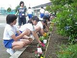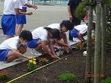 令和元年7月4日(木)放課後、生徒会美化委員会では、校内の環境美化・緑化運動の一環として、校舎南側花壇に季節の花を植える
