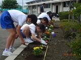 活動を行いました。午前中は大雨が心配されましたが、何とか無事に花の苗を植えることができました。