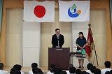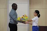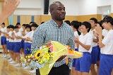 また、4月から英語でお世話になったALT(外国語指導助手)のマイケル・オクテ先生の離任式が行われました。