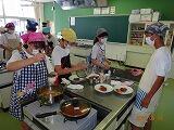 本校では、第2学年家庭科において、食品を、洗う,切る、加熱する、調味する、盛りつけるなどの「調理」について学習します。今回はグループで協力して、衛生的に安全でおいしい「煮込みハンバーグ」に挑戦しました。 → とても上手にできました!