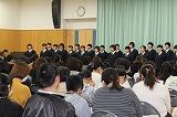 これまで、生徒による卒業式実行委員会を中心に練習を進めてきましたが、卒業生とその保護者、教職員、在校生代表のみの参加で、内容や時間等を縮小して実施する予定となりました。大変残念ですが、どうぞご理解とご協力をお願いします。
