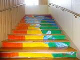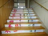 「入会式しおり」と「証書ホルダー」   ※3年生の2階フロアへ続く階段には、在校生による「階段アート」が飾られています。