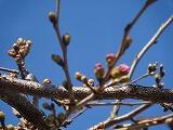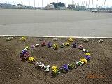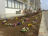 テニスコート東側の桜は、まだ堅いつぼみを抱えています。校舎南側に面した花壇ではパンジーが咲き始めました。