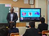 栃木市では、外国語(英語)教育の充実を図るために、外国語指導助手(ALT)の先生を授業に派遣しています。都賀中には、今年度第1学期から、ケニア国籍の「マイケル・アニャール・オクテ先生」が、週に3日のペースで英語の授業に参加してくれます。