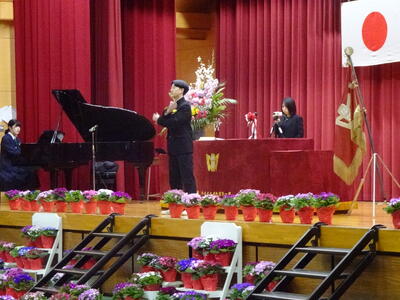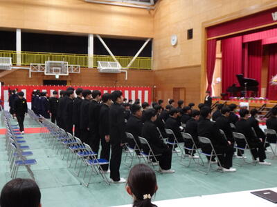 その後、全校生徒で式歌を合唱し、最後には全校生徒、教職員、保護者も一緒に校歌を歌い、式を締めくくりました。