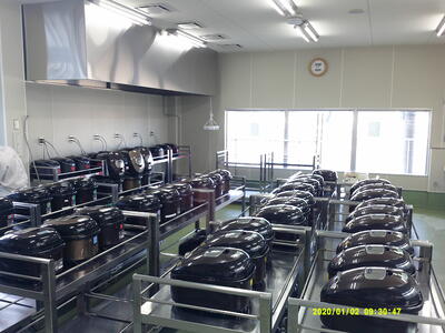 この炊飯器の量‥圧巻です。センター全体で85台、中学校だけで31台稼働だそうです。