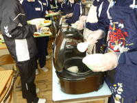都賀地域の学校は、給食センターのご厚意で、家庭用の炊飯器で炊きたての美味しいご飯が提供されます。