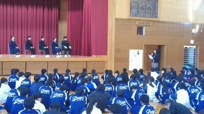 演説後には、「都賀中の学校行事をもっと盛り上げるための工夫」や「安全・安心で過ごしやすく、集中しやすい学習環境づくりのための生徒会としての取組」という議題についてパネルディスカッションをおこないました。生徒一人一人が、学校の未来について考える時間となりました。