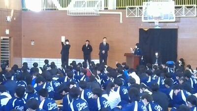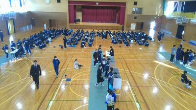 12月22日(月)の5・6校時に、立会演説会および生徒会役員選挙が行われました。はじめに生徒会長のあいさつがあり、その後、生徒会長候補者5名、副会長候補者5名による演説が行われました。