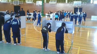 生徒たちは都賀中の未来を考えながら、真剣な表情で一票を投じていました。