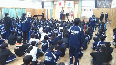 式の最後に、校歌を斉唱して終業式を終えました。